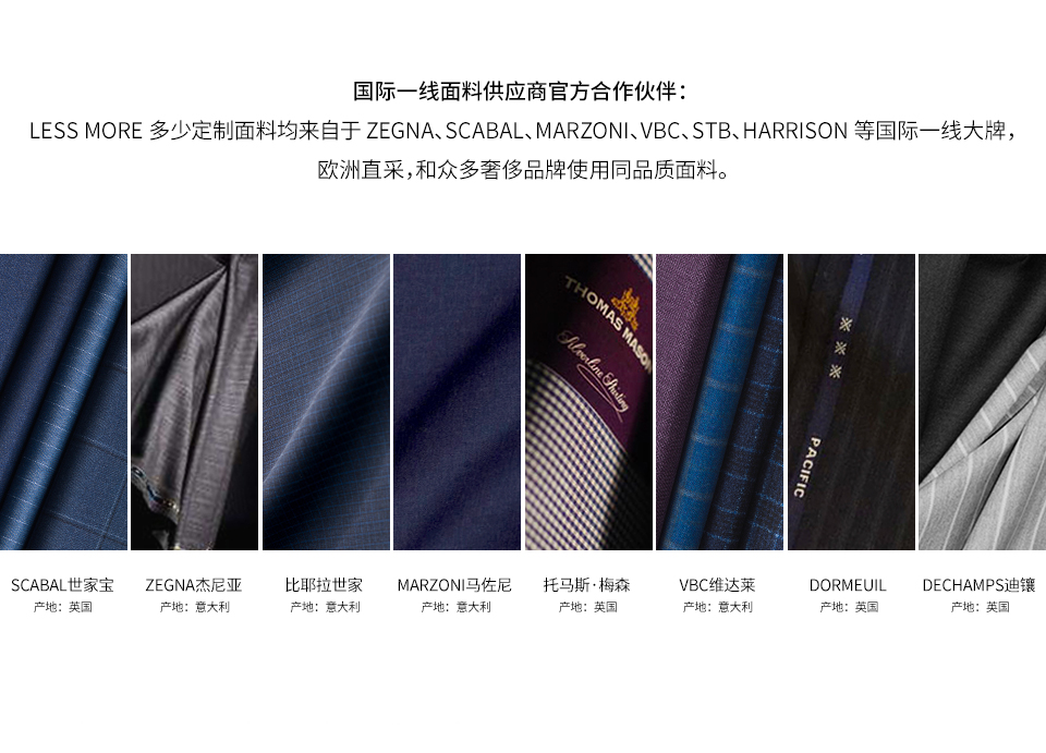 LESS MORE 多少定制是能夠提供男士全品類定制產品的生活方式品牌,對于中國商務男士來說,定制是對西裝最認真的態度。